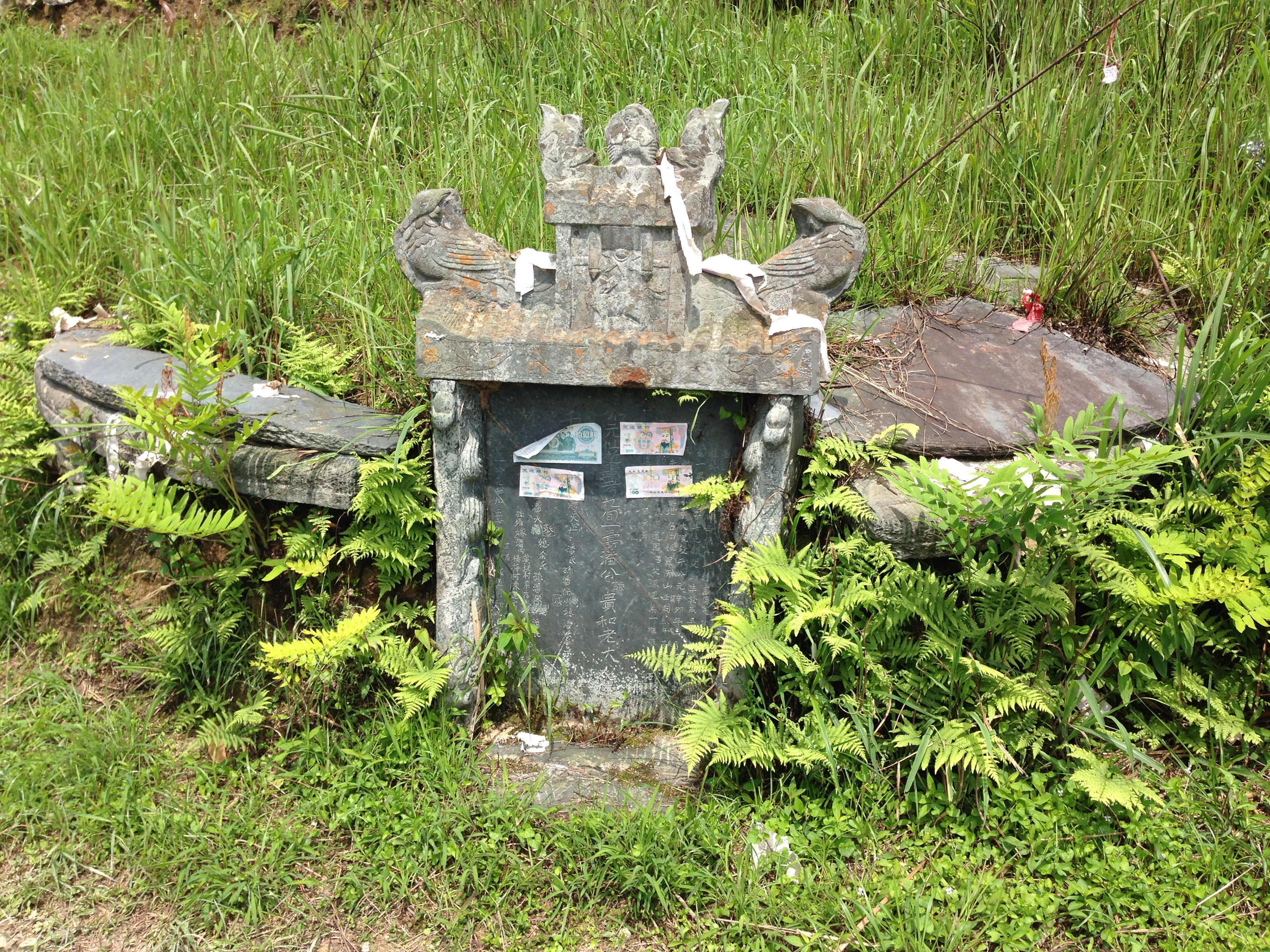 Every now and then we pass a tombstone. About half an hour out of Ping’an, there was a small cemetery, with around 30 of them dotting a hillside, and throughout the rest of the day they pop up intermittently, covered in tributes to deceased ancestors – paper money and withering flowers. Ancestor worship, while practiced throughout China, is particularly important to the Zhuang people.
