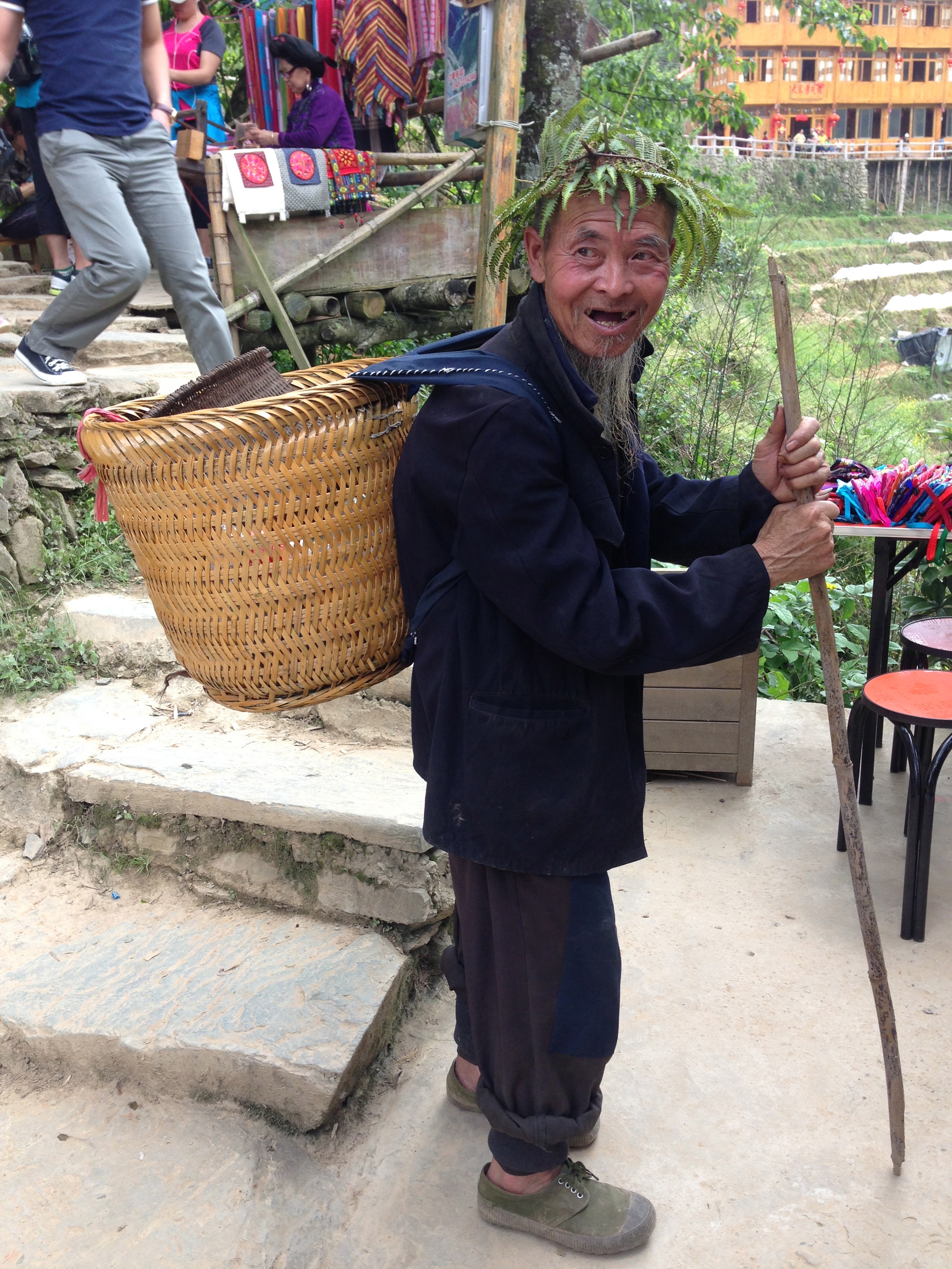 We stop to rest in a small gazebo where a local farmer is also taking a break. Another woman, also in traditional dress, stops by and has a conversation with my guide in the local dialect. I can’t understand a word except that the tone and timber tells me there is some serious local gossip being exchanged.